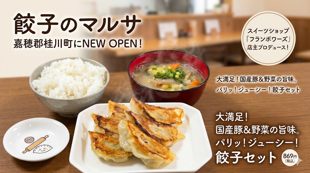 【桂川町ランチ】「餃子のマルサ」が新規オープン!絶品餃子定食と豚汁を徹底レビュー